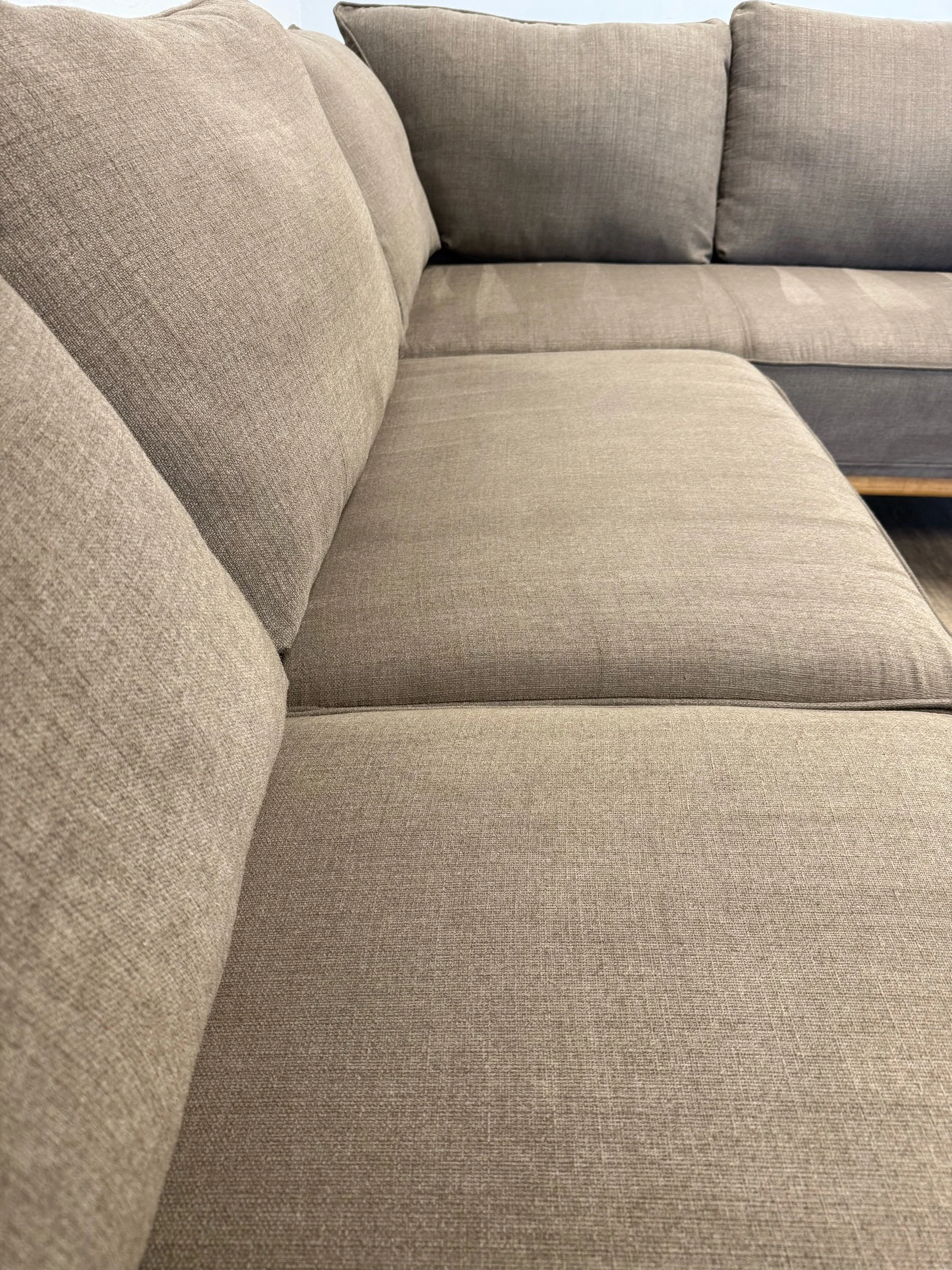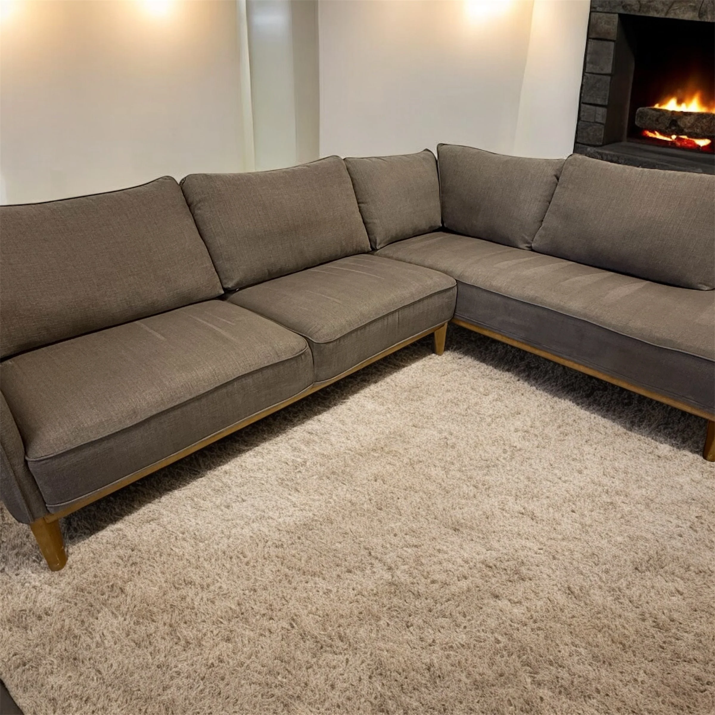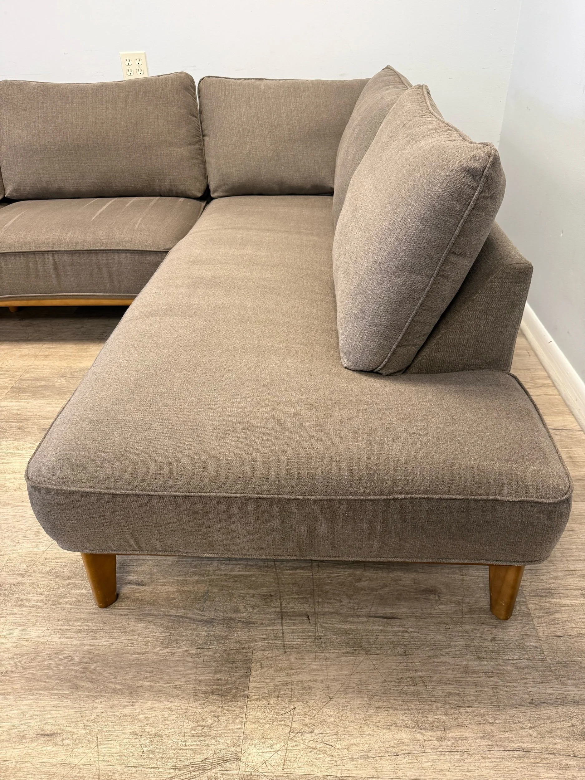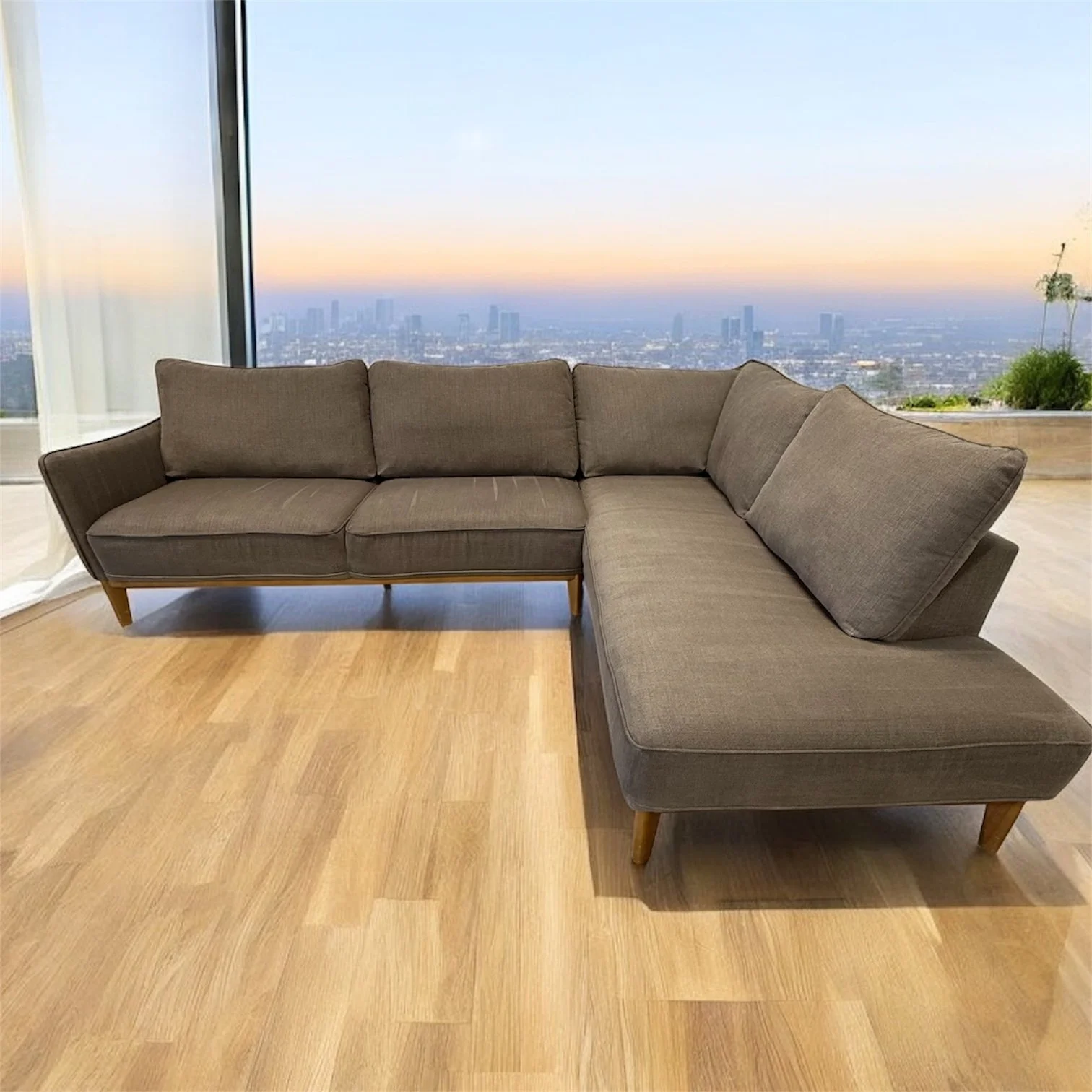 This stylish two-piece sectional blends soft, textured upholstery with clean mid-century modern lines, delivering timeless design and luxurious comfort.