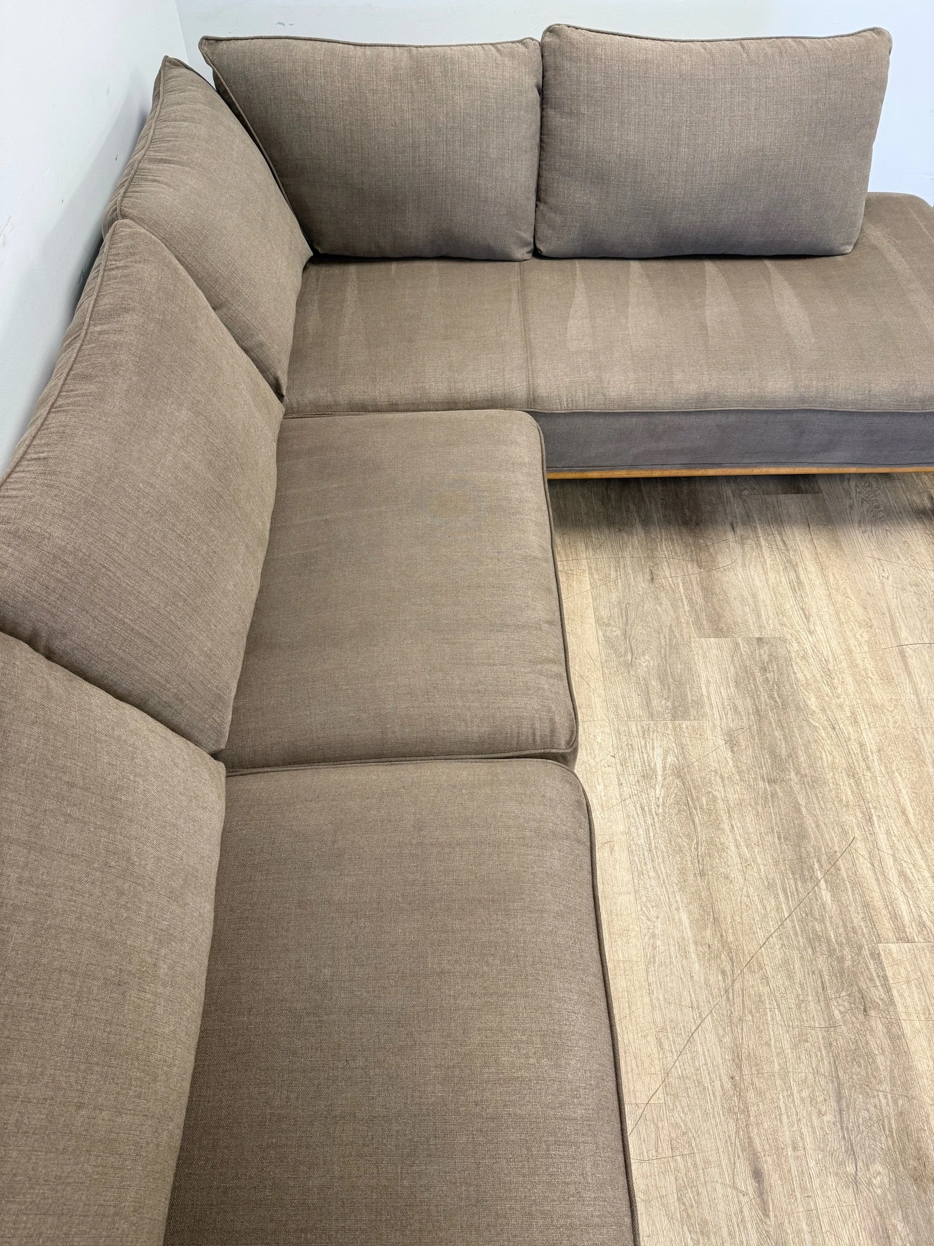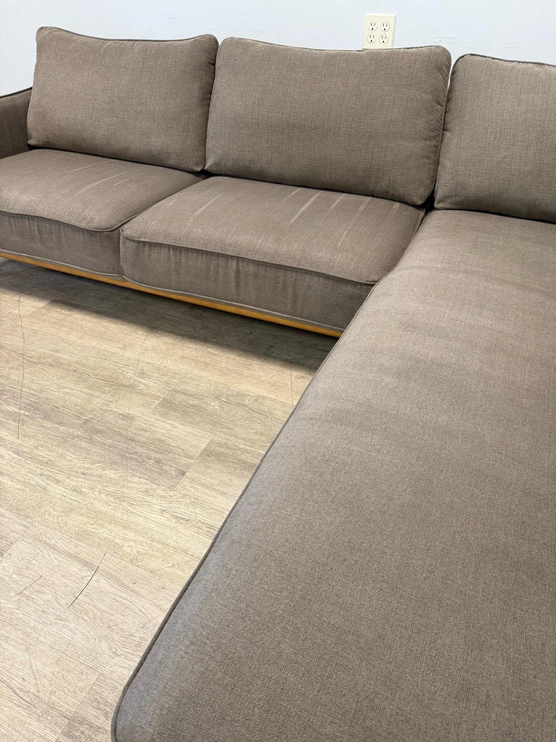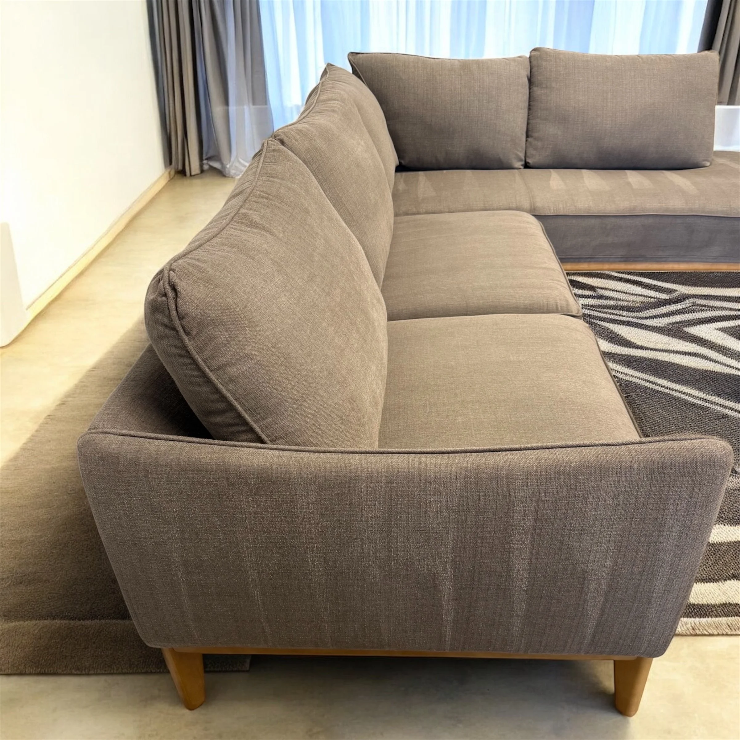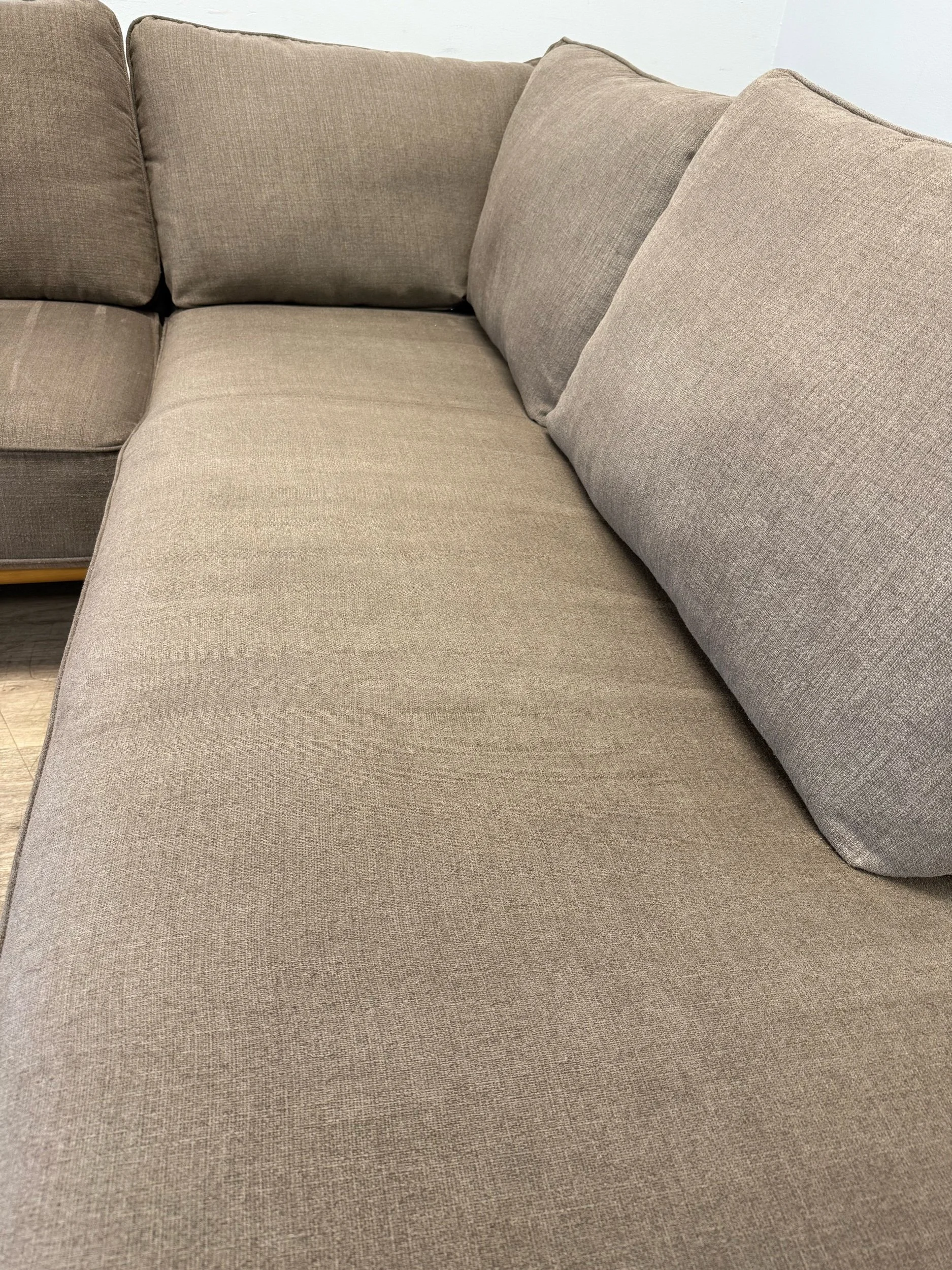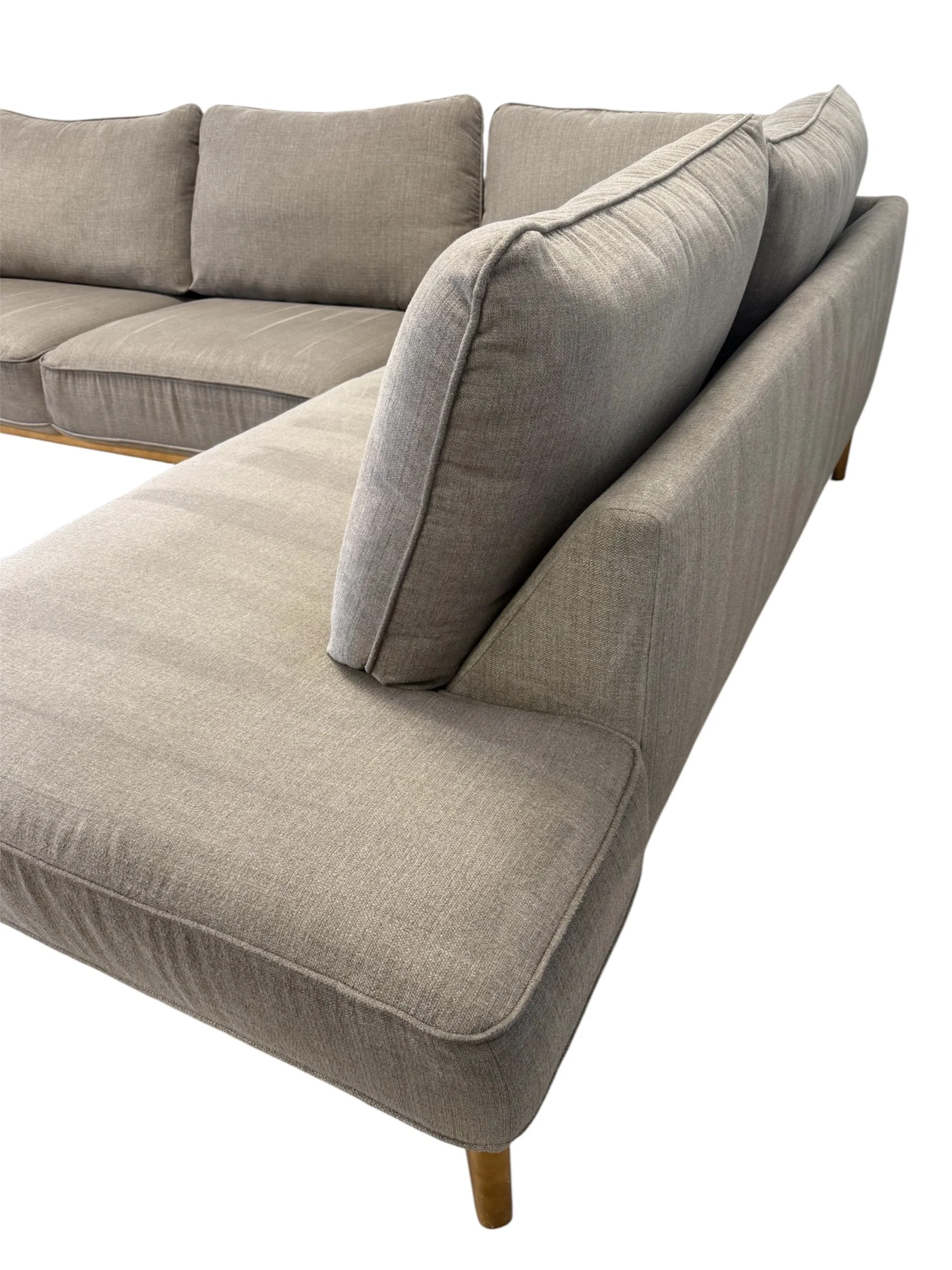 This stylish two-piece sectional blends soft, textured upholstery with clean mid-century modern lines, delivering timeless design and luxurious comfort.