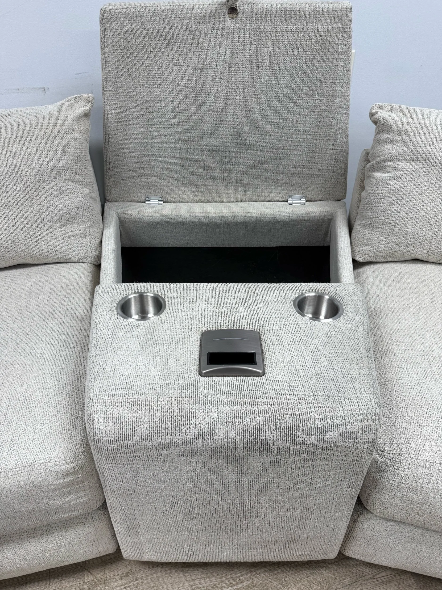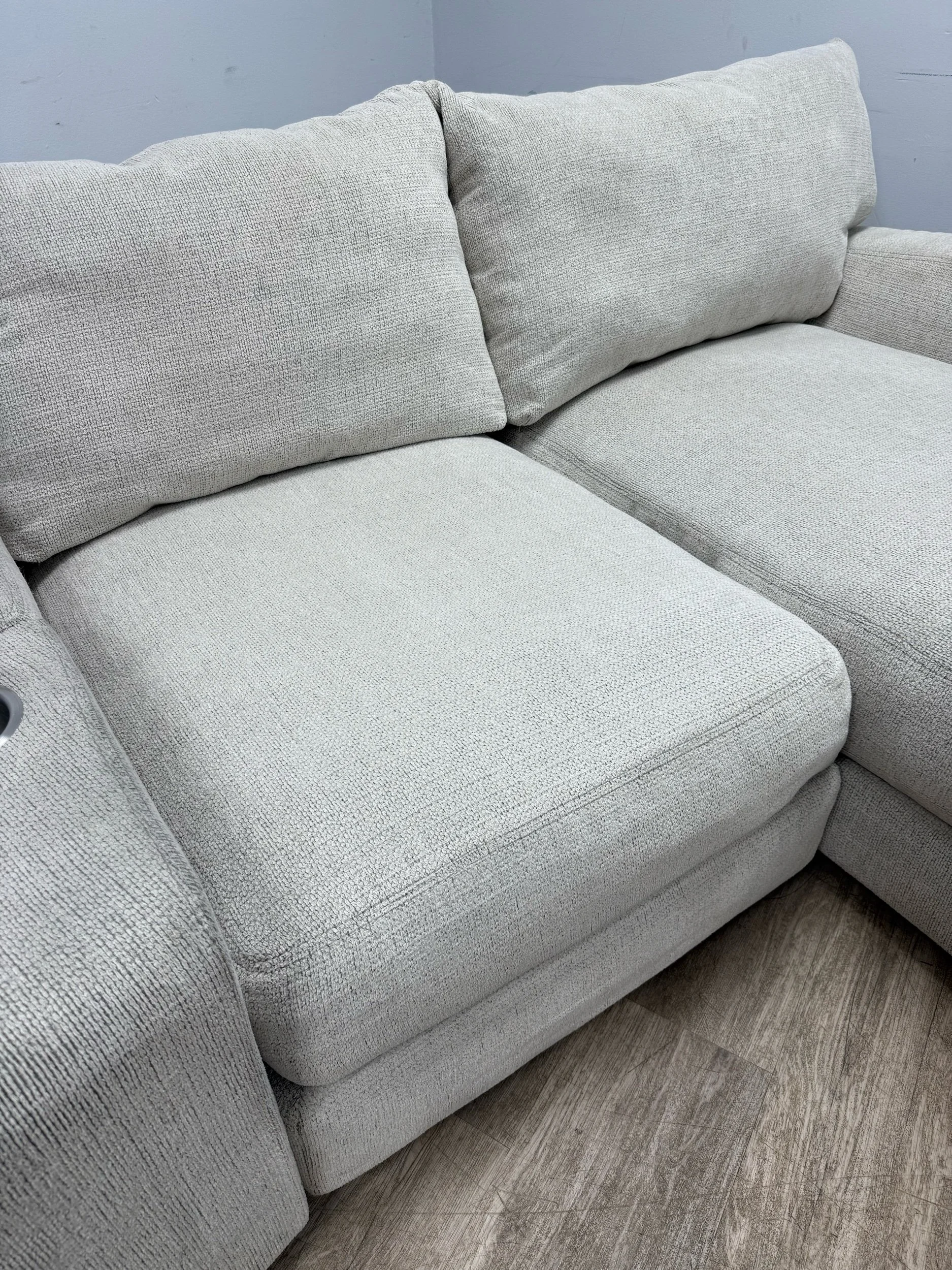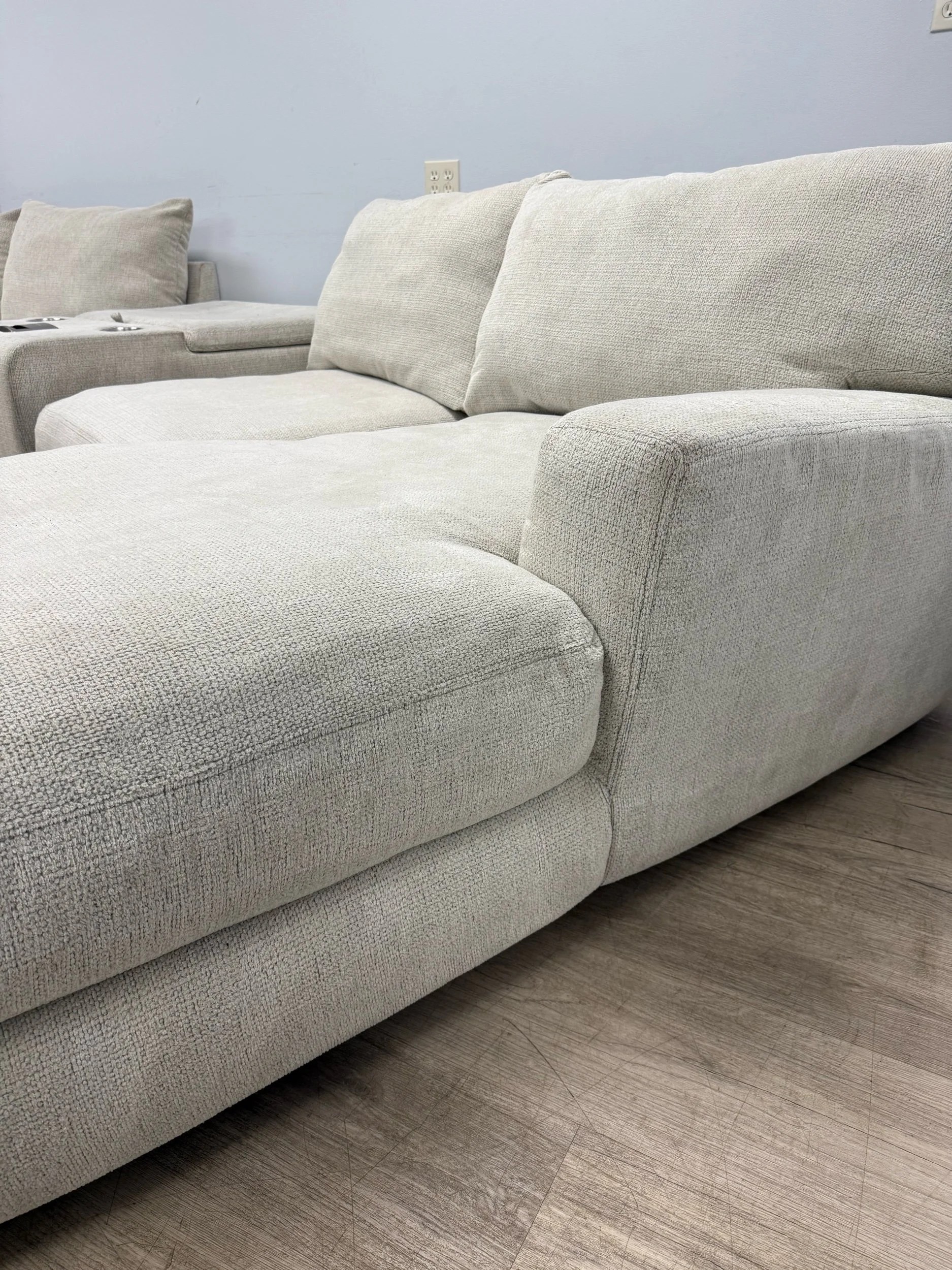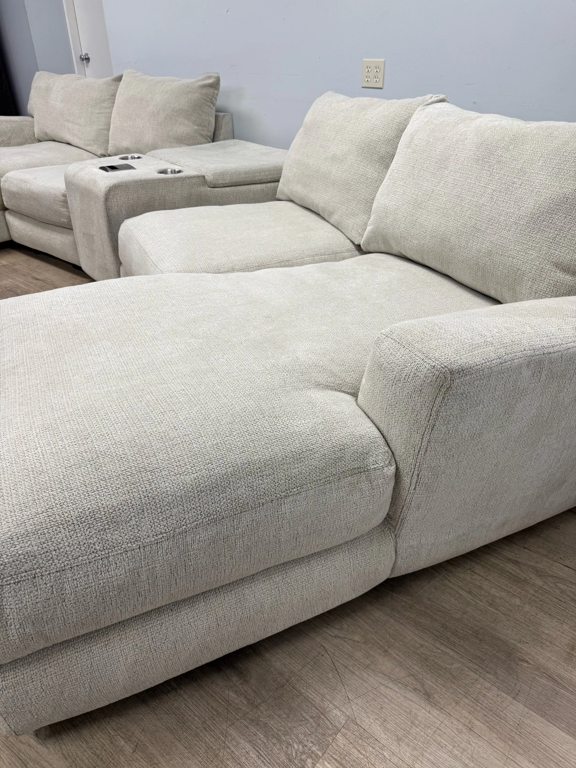 Experience ultimate comfort and convenience with the SmitheCraft Large 5-Piece Sectional in Ivory. This spacious sectional features deep, plush seats designed to provide exceptional support and relaxation for the whole family. Thoughtfully crafted with modern living in mind, it includes a built-in wireless phone charger to keep your devices powered and ready. Plus, the hidden storage compartment offers a perfect solution for stowing blankets, pillows, or other essentials, keeping your living space tidy. The elegant ivory upholstery adds a fresh, sophisticated touch to any room, making this sectional a stylish and functional centerpiece for your home.