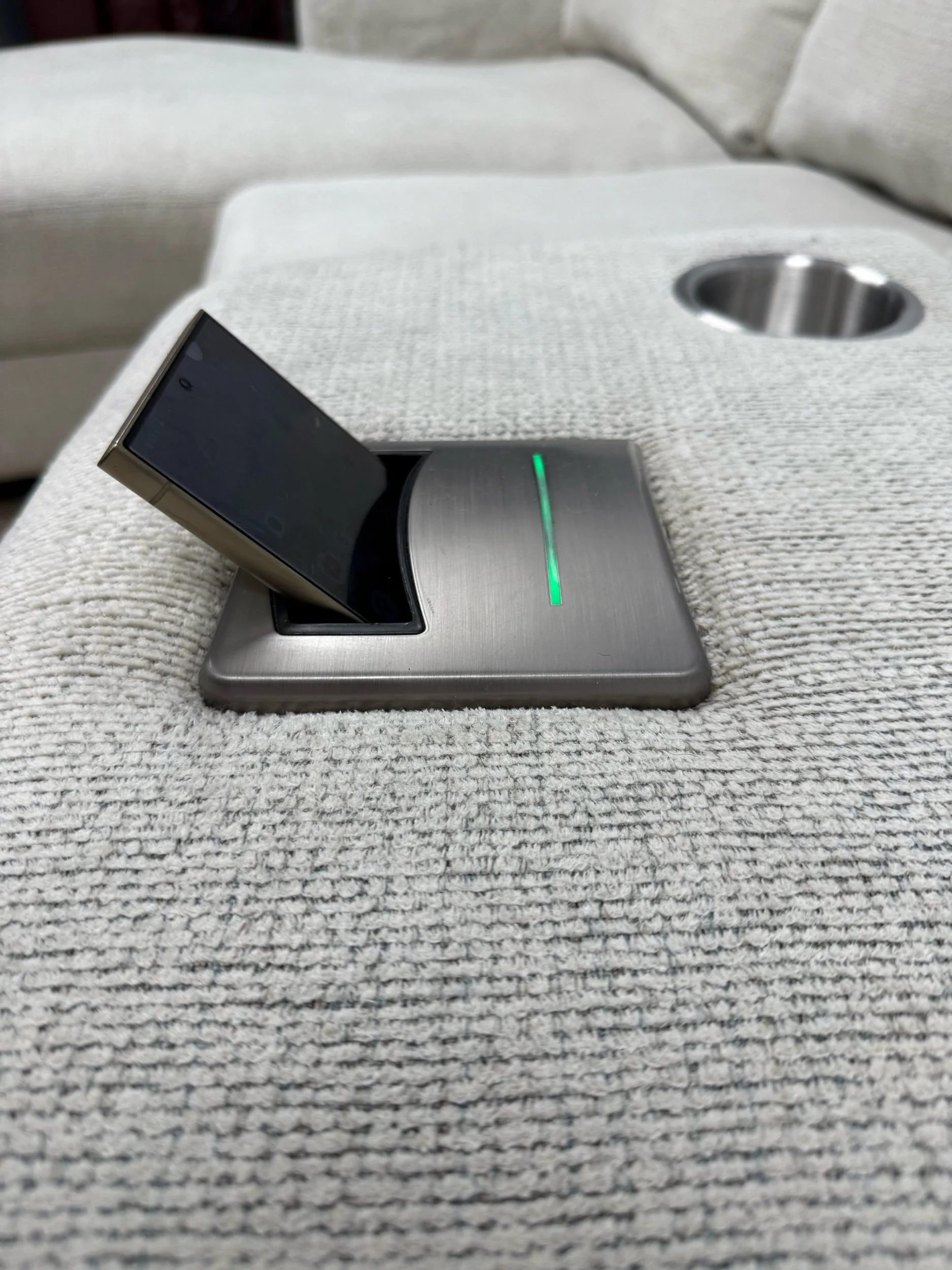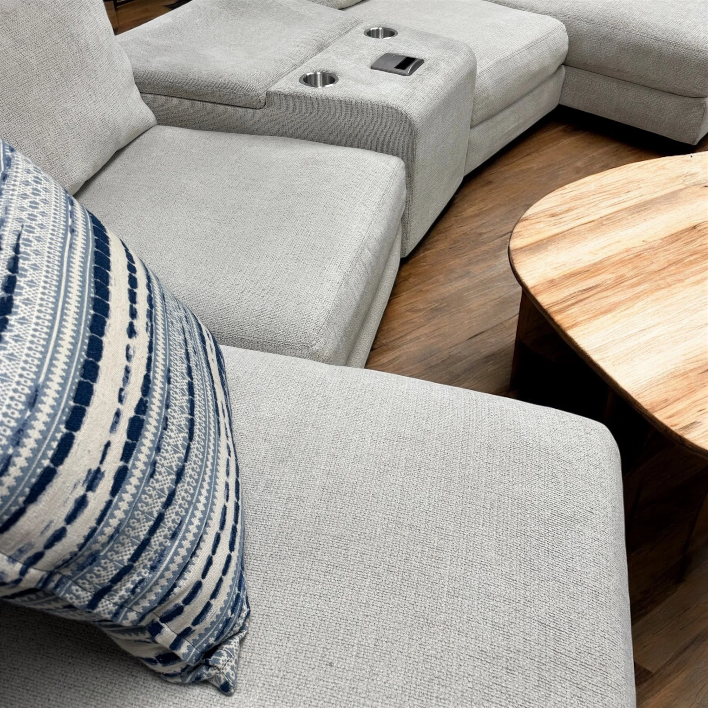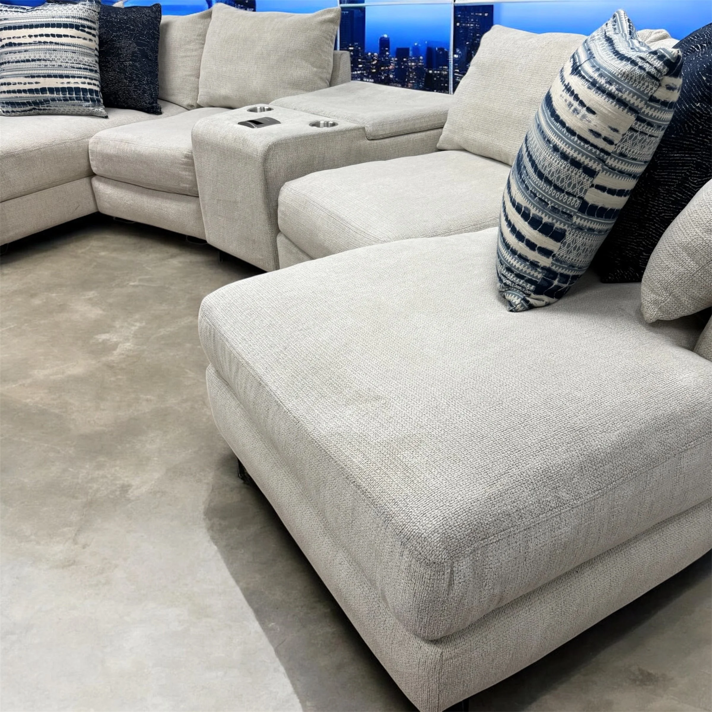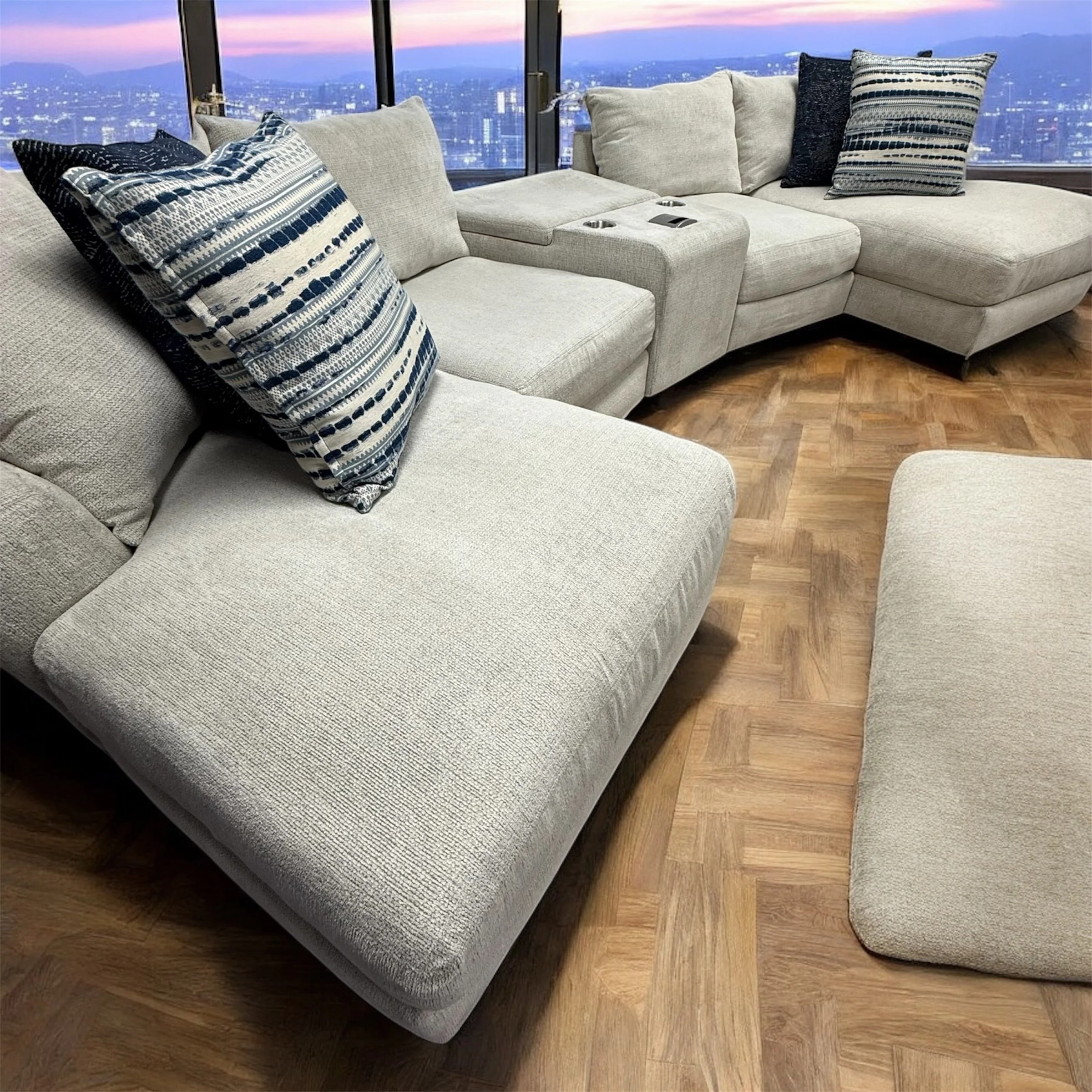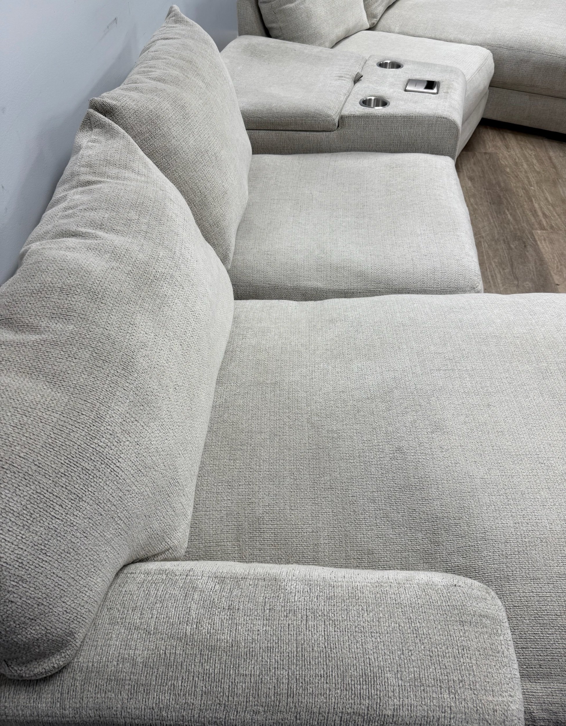 Experience ultimate comfort and convenience with the SmitheCraft Large 5-Piece Sectional in Ivory. This spacious sectional features deep, plush seats designed to provide exceptional support and relaxation for the whole family. Thoughtfully crafted with modern living in mind, it includes a built-in wireless phone charger to keep your devices powered and ready. Plus, the hidden storage compartment offers a perfect solution for stowing blankets, pillows, or other essentials, keeping your living space tidy. The elegant ivory upholstery adds a fresh, sophisticated touch to any room, making this sectional a stylish and functional centerpiece for your home.